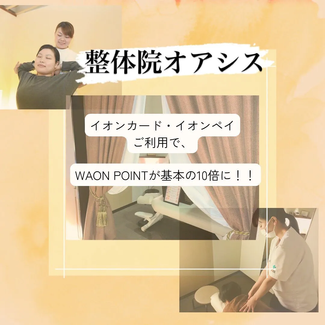 #整体 #もみほぐし #ヘッドスパ #足つぼ #福津 #古賀 #宗像 #新宮 #イオン #期間限定 #ポイント10倍 #WAONPOINT #ワオンポイント #お得 #腰痛 #肩こり #頭痛 #血流改善 #ボティケア #イオンマーク #
