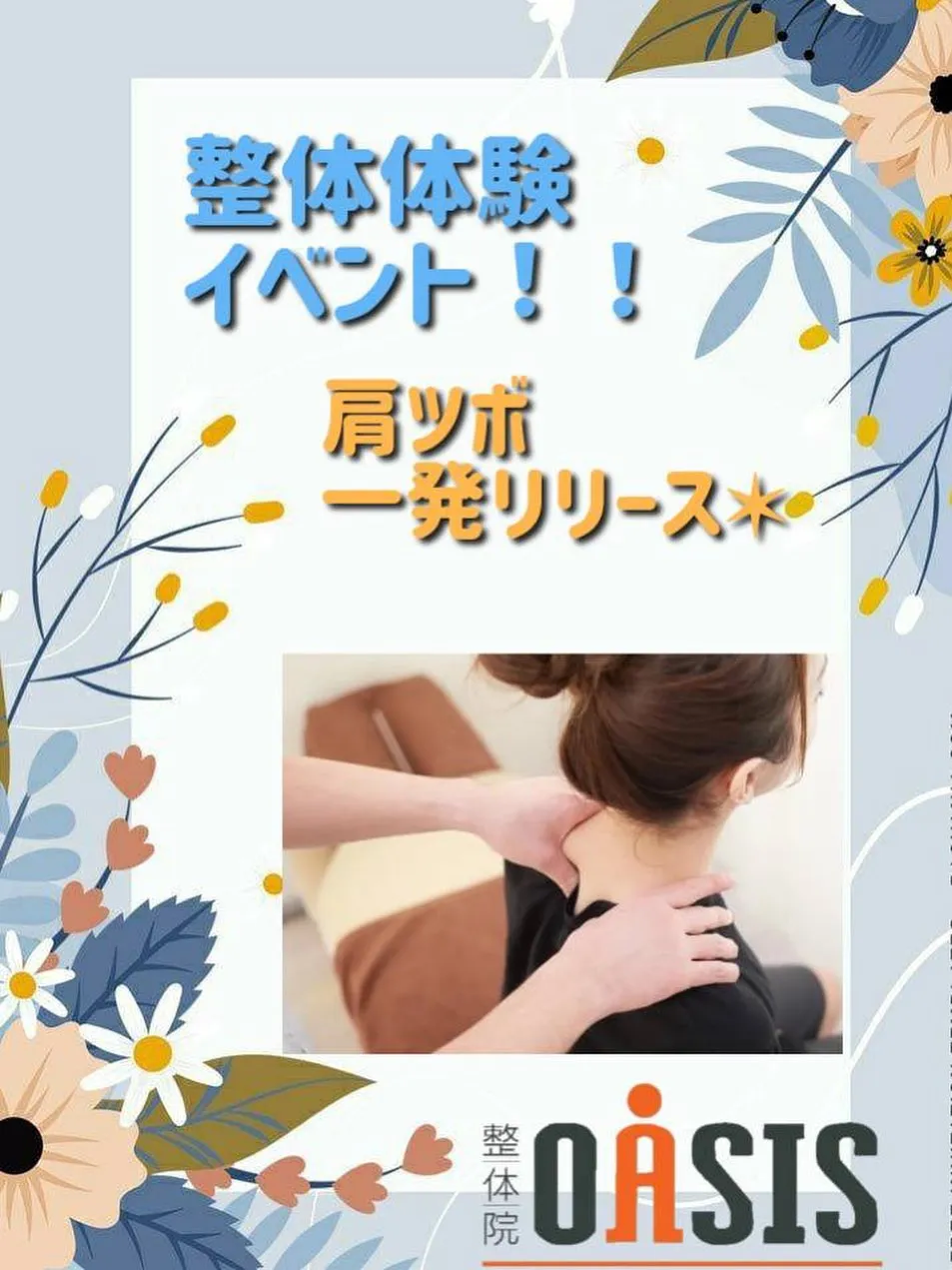 好評の整体体験イベント「肩ツボ一発リリース」を開催いたします!