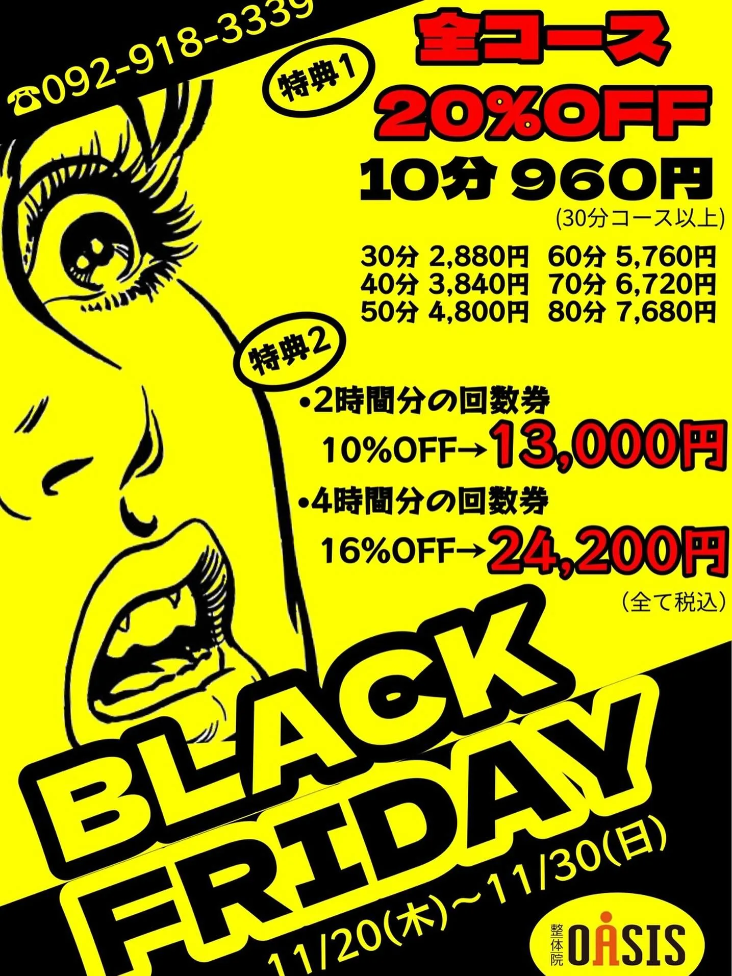 #イオンモール筑紫野 #整体院オアシス #カイロプラクティック #ブラックフライデー #ヘッドスパ