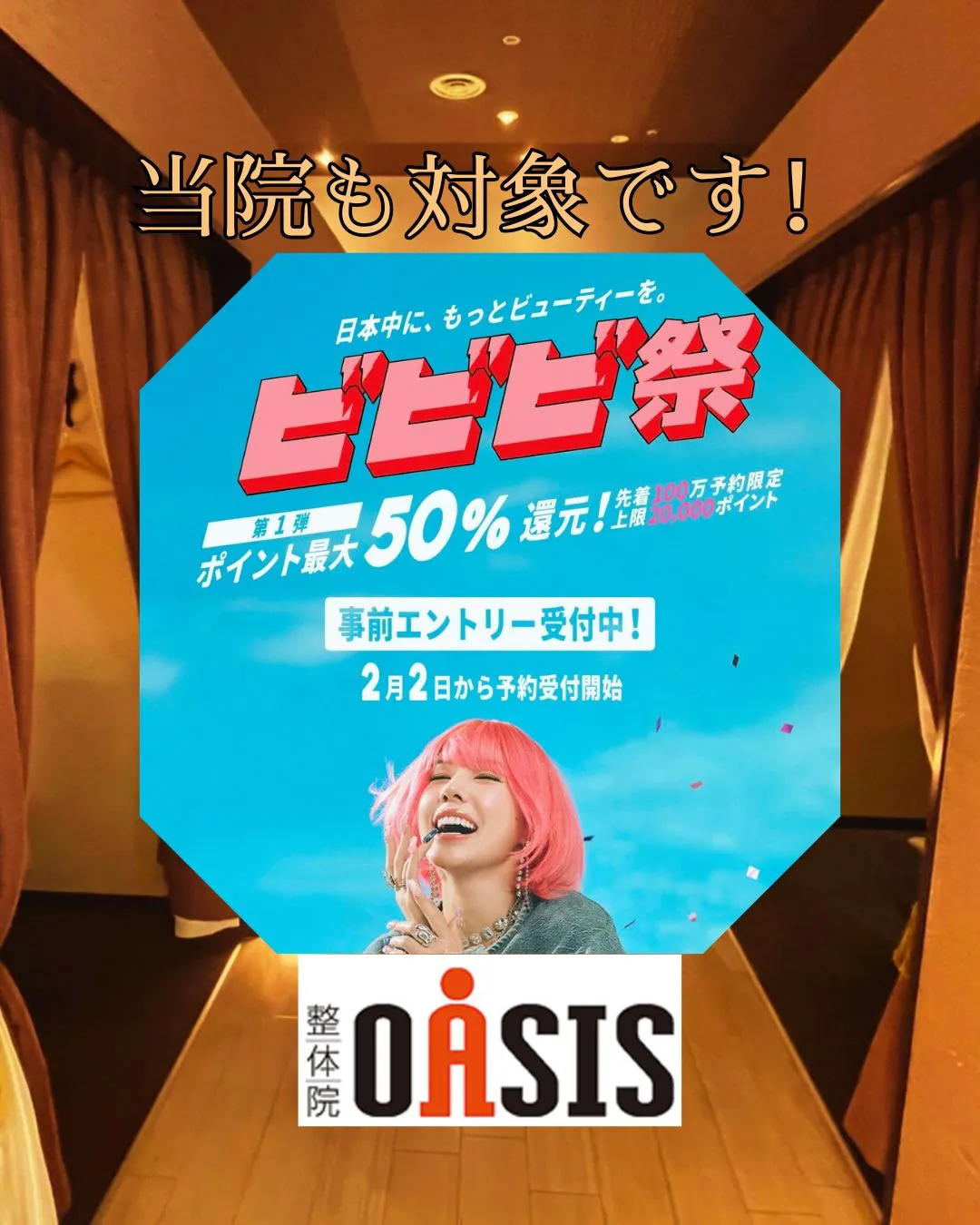 ホットペッパービューティーのビビビ祭はく整体院オアシス>も対象です!